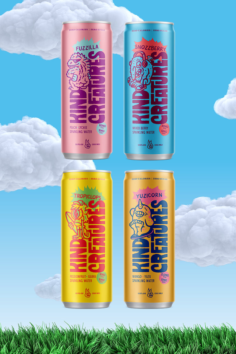 Kind Creatures is your new go-to for guilt-free chilling. Sparkling water, zero calories, zero sugar, fabulous flavors and juuuussst the right amount of THC to keep things fun. Yep, we pretty much nailed it.